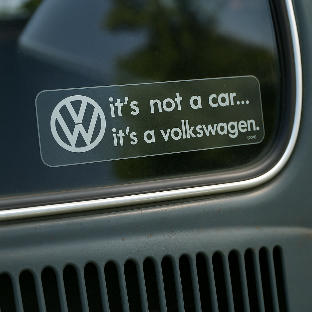 Its not a car, it’s a volkswagen - 160x45mm - white print on clear background